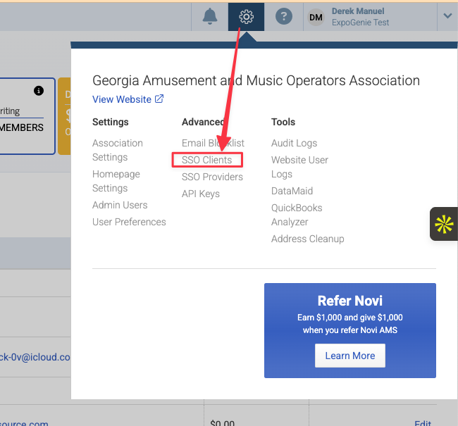 - https://<portalname>.expo-genie.com/<youreventname>/novi-sso-authentication (example ⇒ https://njaa.expo-genie.com/26/novi-sso-authentication)