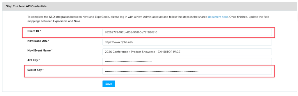- Complete the rest of the Novi API credential fields as per below, then click “Save”