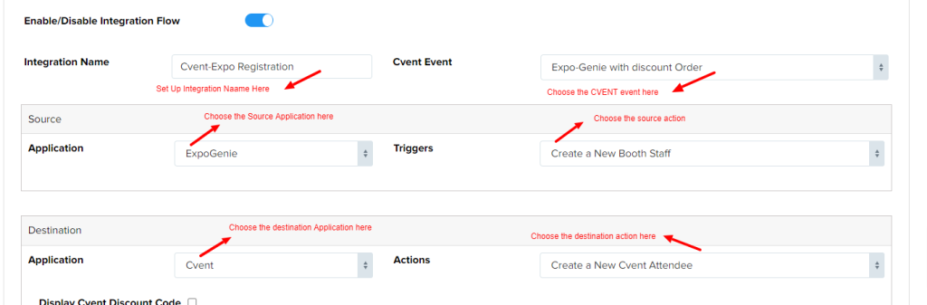 • Designate Expo-Genie as the Source and Cvent as the Destination within the Flow.